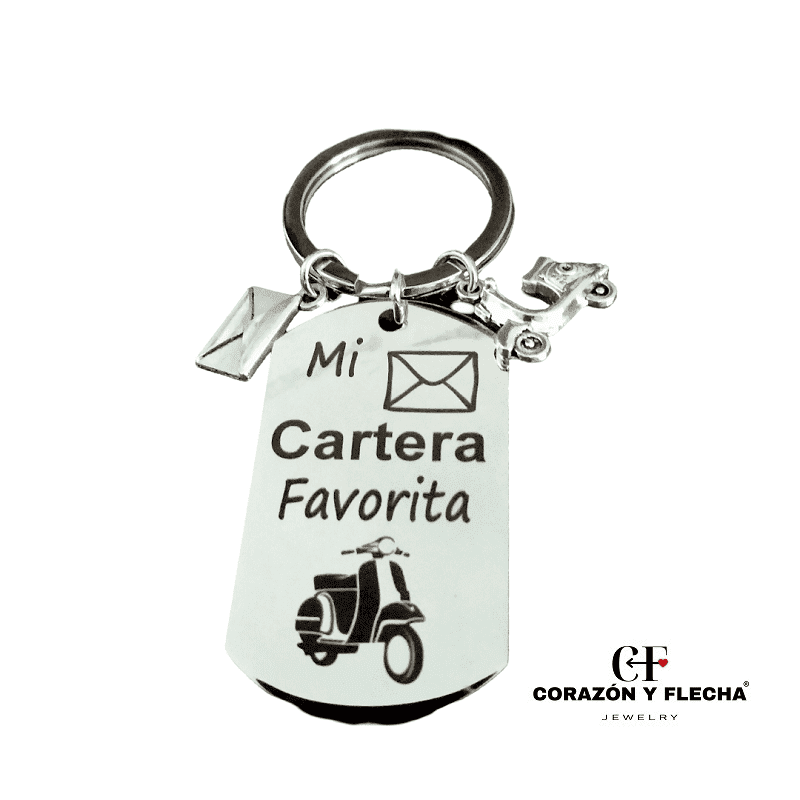 Llavero mujer de acero Cartera con dos colgantes de adorno, medidas 48x28mm, personaliza la cara b con foto o texto.