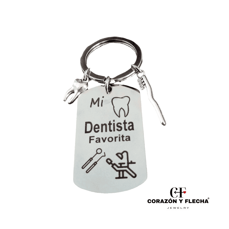 Llavero mujer de acero Dentista con dos colgantes de adorno, medidas 48x28mm, personaliza la cara b con foto o texto.