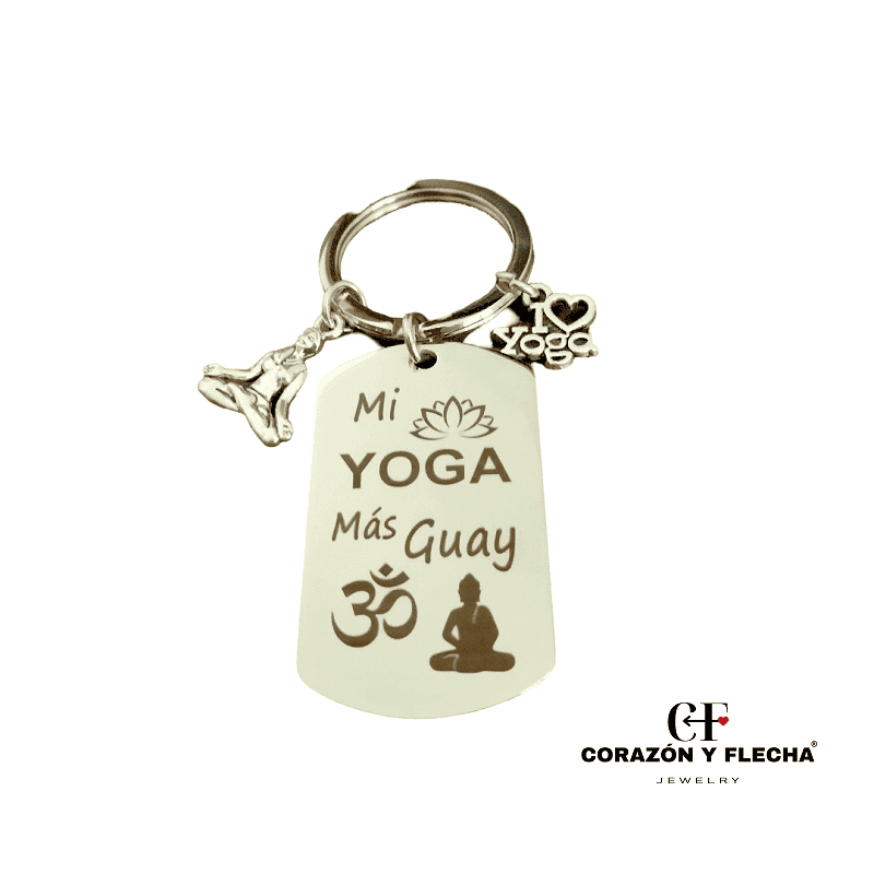 Llavero de acero unisex Yoga con dos colgantes de adorno, medidas 48x28mm, personaliza la cara b con foto o texto.
