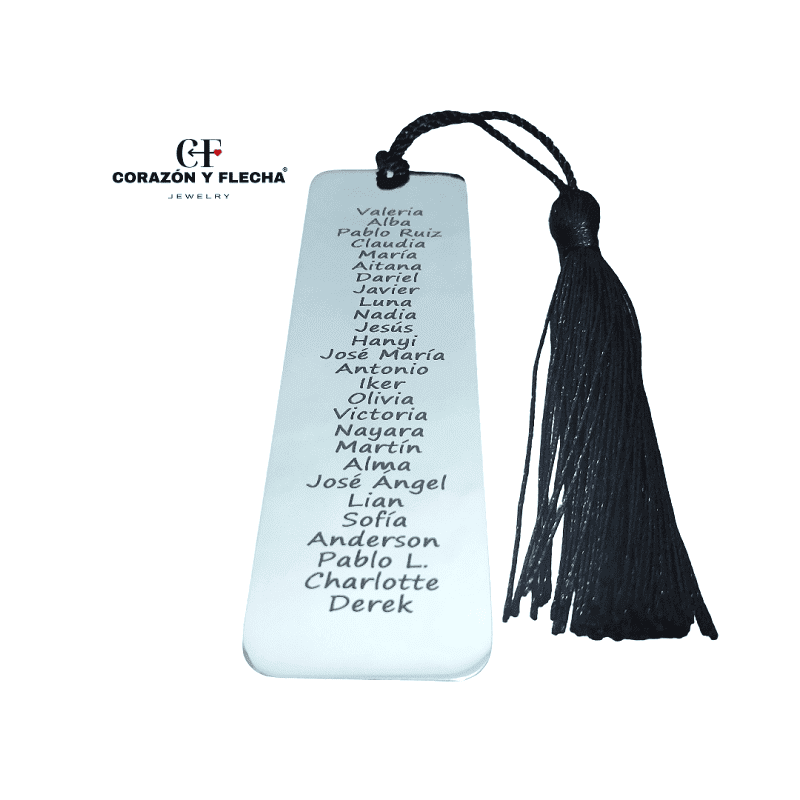 Marcapáginas de acero personalizado con nombre del profesor o profesora, nombres de alumnos, curso , fecha, Regalo original y lleno de emoción, incluye borla decorativa, ideal para fin de curso o agradecimiento.
