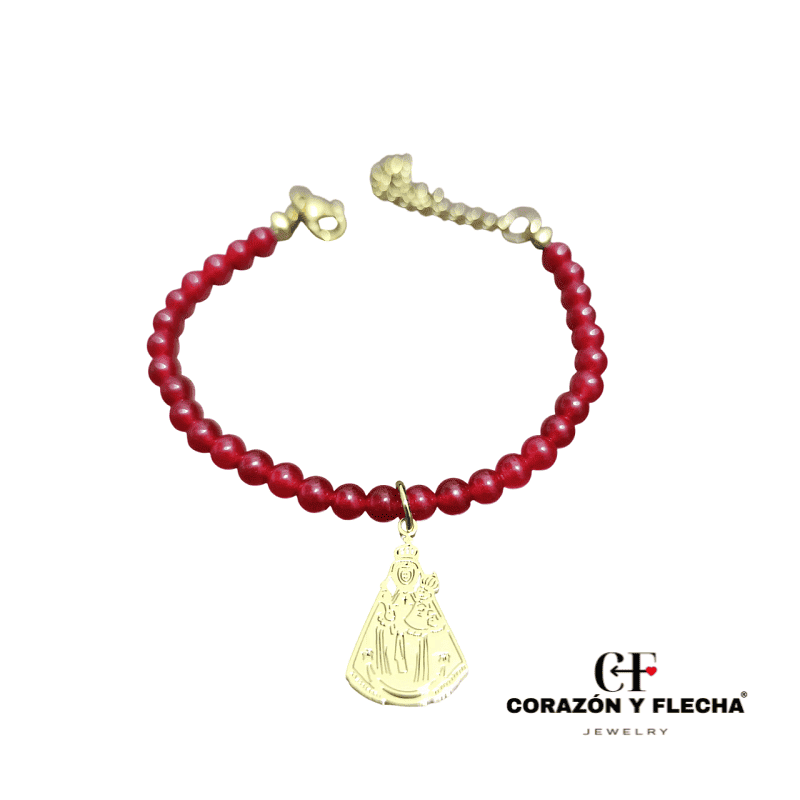 Pulsera mujer piedra cornalina con Virgen de la Fuensanta en acero dorado, medida 14+5cm.